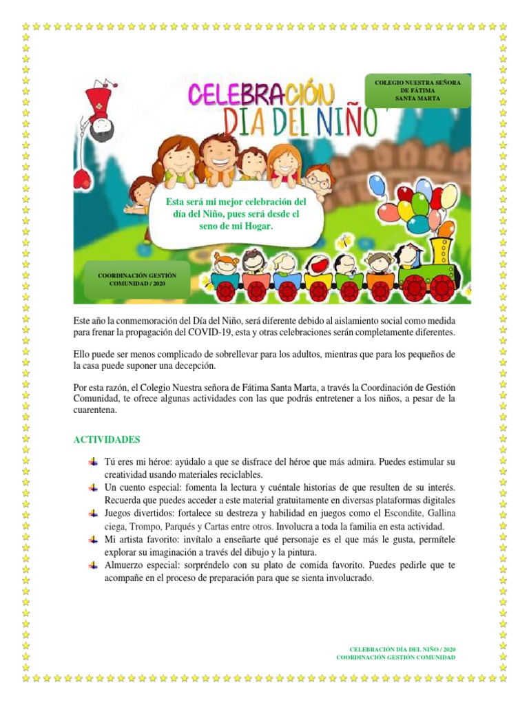 Dia Del Niño 2020 - Bera Delivery Una Buena Alternativa Para El Regalo Del Dia Del Nino / Es un día de celebración por los avances conseguidos, pero sobre todo es un día para llamar la atención sobre la situación de los niños más desfavorecidos, dar a conocer los derechos de la infancia y concienciar a las personas de la importancia de.. 28 de abril de 2020 página 1/2 estadísticas a propósito del día del niño datos nacionales • de acuerdo con la encuesta nacional de la dinámica demográfica 2018, en el país residen 38.5 millones de niñas, niños y adolescentes de 0 a 17 años, que representan el 30.8% del total de población. Nos unimos a la celebración del día del niño, que durante el 2019 se celebra en colombia el 27 de abril. Apr 30, 2020 · aquí te contamos la oscura historia y origen detrás de la celebración del día del niño 2020, que este año ocurrirá en medio de la pandemia de coronavirus. Frases del día del niño. Sandra sánchez, primera medalla de oro en karate de juegos olímpicos.